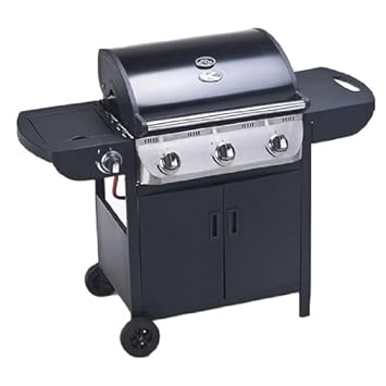 via amazon.frBarbecue gaz KOOKI Sceptre comprenant 3 brûleurs 3.55kW et 1 brûleur latéral - Allumage automatique - Tablettes latérales - Thermomètre intégré permettant ...